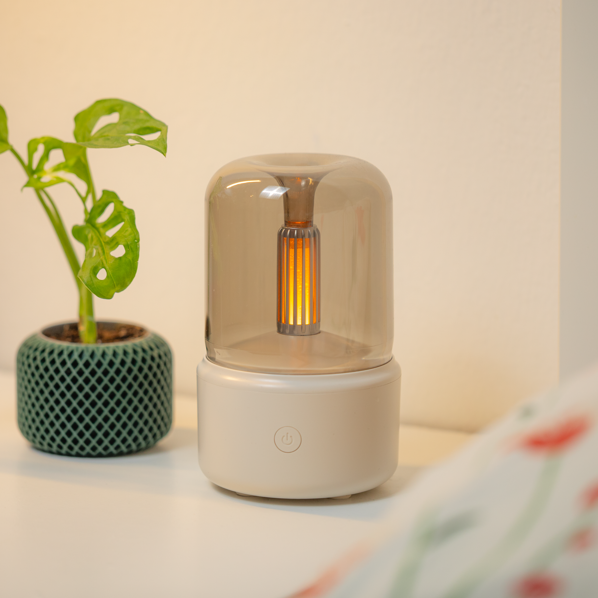Elegantní aroma difuzér se teplotou světla jako plamínek svíčky. Stačí voda, pár kapek esenciálního oleje a můžeš si užívat klidnou aromaterapii až 12 hodin.